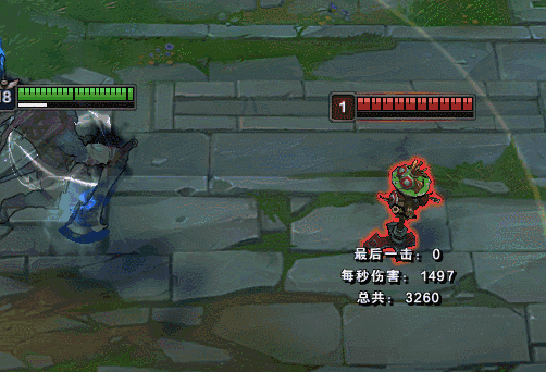 技巧方面,主要的核心还是落地秒与AQ,落地秒在目前的版本依然有比较不错的表现,具体连招是提前开Q,跳EW九头蛇满怒Q,基本上就能打出最高伤害了,上图是在训练模式中的一个片段,神装狮子狗一套下去连人偶的都得被打掉3000血,更别说在游戏中AD根本没有这么高的双抗,也不会有3000血,被跳到那就是瞬秒。