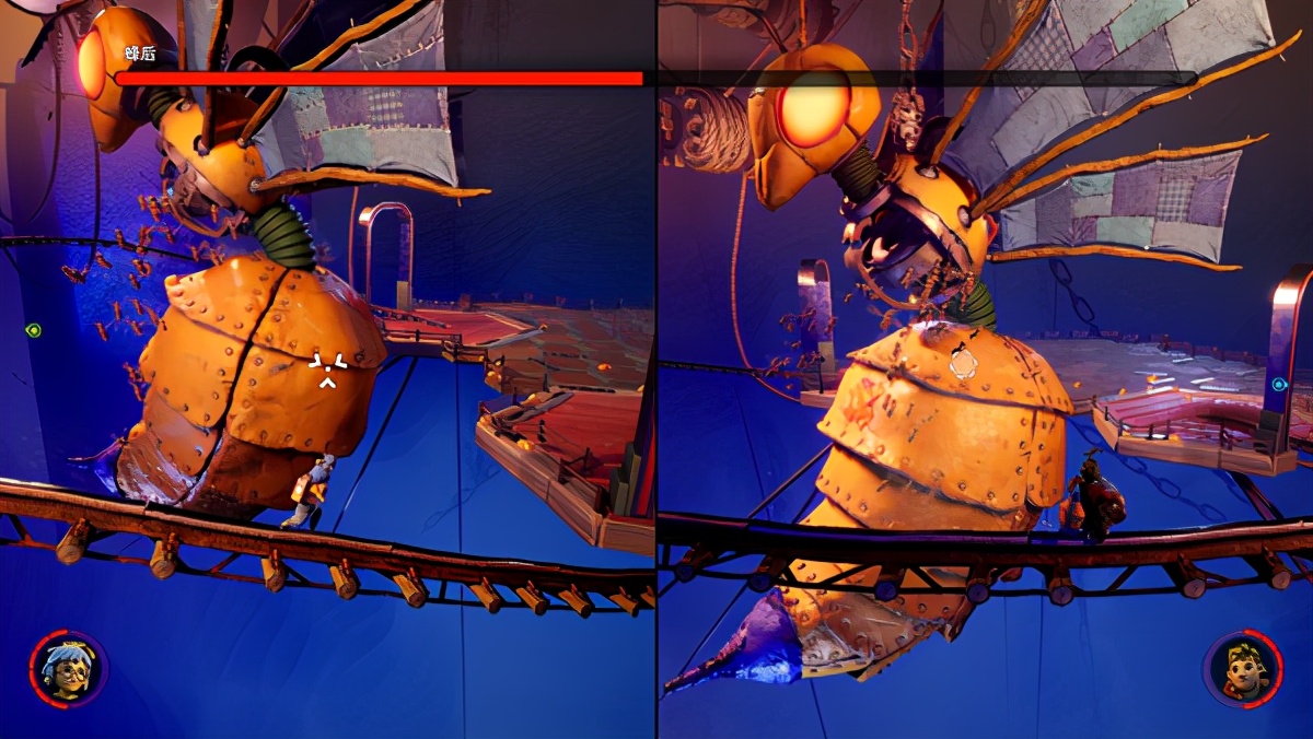 无论是单机双人还是联机双人,游戏都将处于分屏模式,每位玩家一人一半。当某位玩家正在进行关键剧情时,所属屏幕的面积则会被拉大,从而挤开另一半屏幕。这种形式十分新颖,但也不免被人质疑是否会影响到游戏的体验。