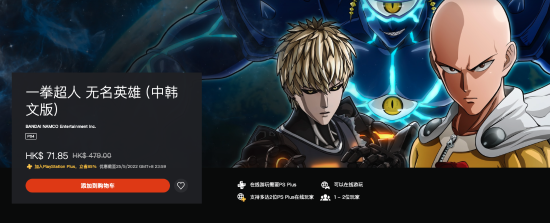《一拳超人:无名英雄》 PS+会员价 71.85HKD