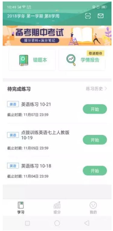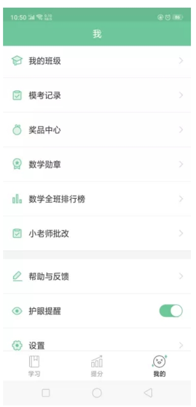 接着是提分页,功能比较强大,可以对薄弱环节进行针对性练习,或者对某一环节进行突击练习,题目由熟悉同学的老师出,更有针对性,学习效率更高。因为这款软件的定位人群的中学生,所以“护眼提醒”这一功能显出开发着的用心,学生端根据学习时长定时弹出护眼提示,提醒学生休息护眼,保护视力健康。