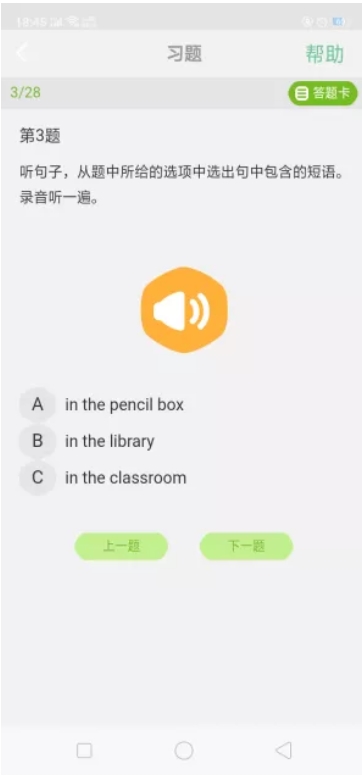接着往后看,练习页面的功能较全面,表明进度、习题类型,令人惊奇的是分制说明这个功能(像ismart、e板书这类软件就没有明确的打分细则),清楚明白地向练习者显示题目的得分点与失分点;个别英语题目的音频稍微有些不精致,像是剪辑没有剪好,掐头去尾。