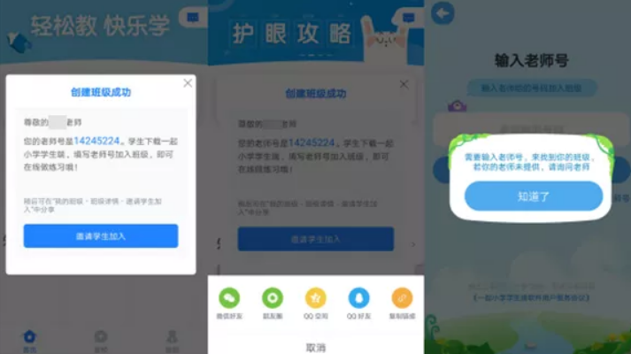 “一起小学学生”App提示需要输入“老师号”才能注册,而在“一起小学老师”App利用手机号注册后,便成功生成了“老师号”。