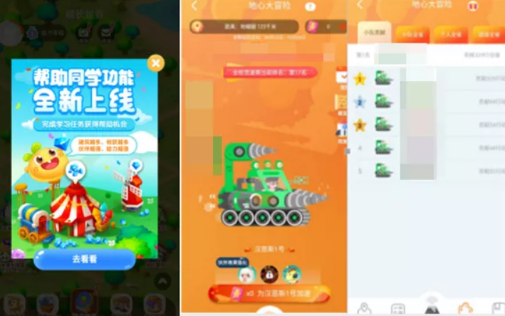 林女士发现在“一起小学学生”App里,儿子在“地心大冒险”游戏中以329行动值排名“小队贡献”第一,在全校竞速赛中排名第17名。