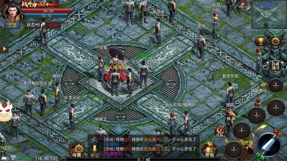 挂机介绍:游戏内内置智能挂机,自动打怪、自动拾取、自动回收!随身泡点轻松升级60级开启多种玩法 自由转职 地图BOSS超多随机爆出顶级装备,独创五行灵根:金、木、水、火、土、修炼五行神体,一统江湖!