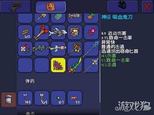 泰拉瑞亚吸血鬼刀好不好 性能解析。它的综合dps甚至高于霜月的松针发射器,当然,它相比于松针也是有弱点的,那就是伤害过低了。那就来了解一下它的属性吧。