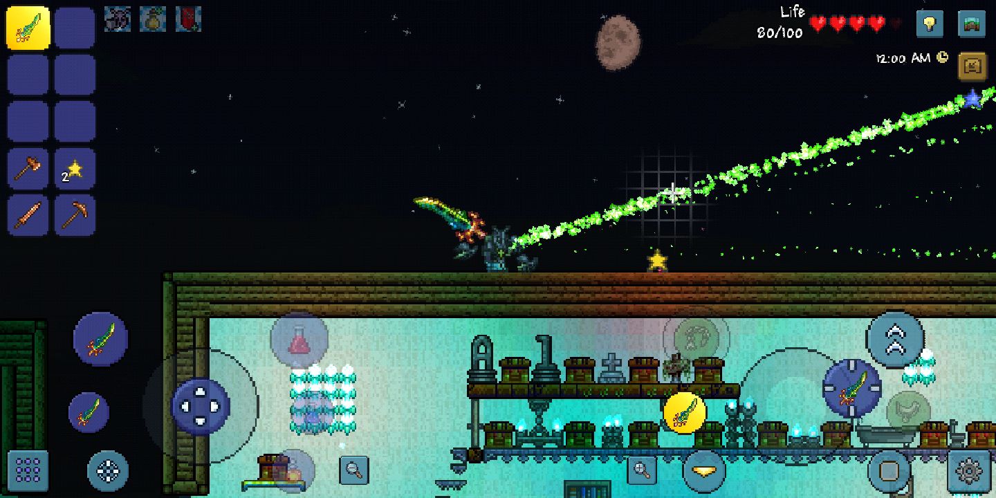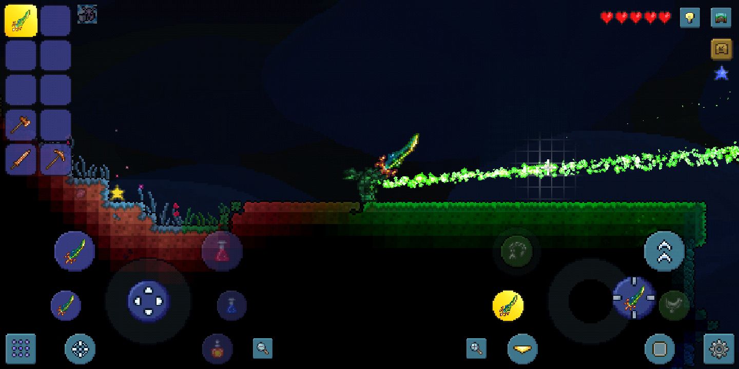 2、在泰拉之刃进行攻击时,会发出一道绿色的剑形状的光,这种光可以提供光源用于照亮,剑只能向一个方向攻击,被攻击到的地方会产生高额伤害。如果攻击对象为一群人,使用泰拉之刃是一个非常不错的选择