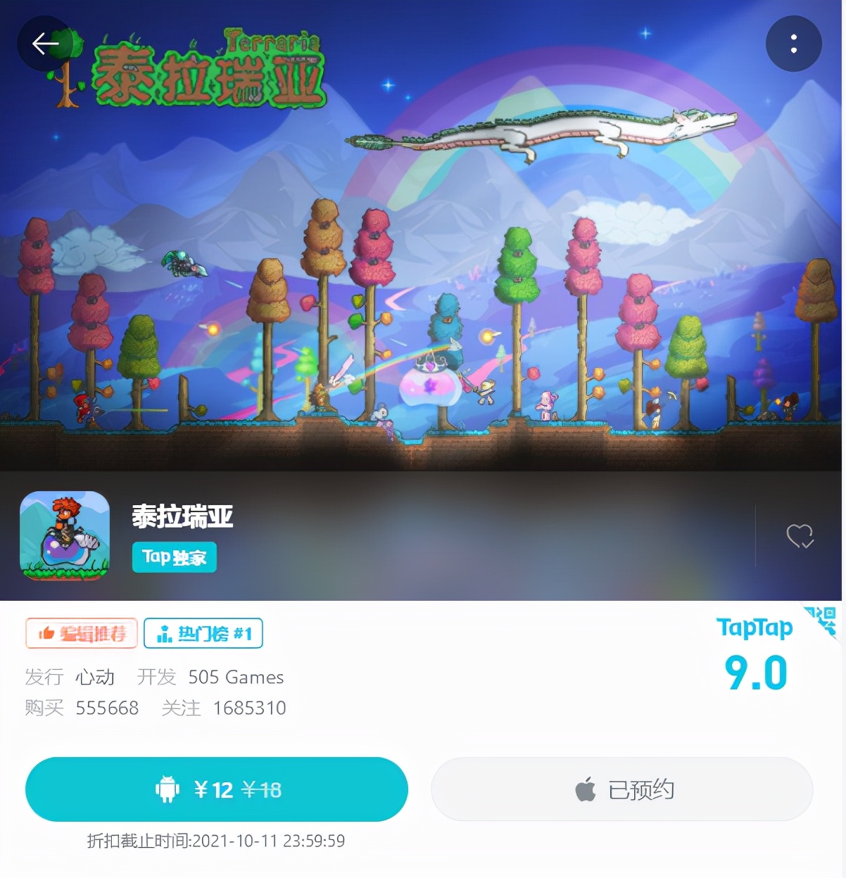 目前《泰拉瑞亚》手游已经正式上线taptap了,首发期间仅需12元即可购买,游戏采用买断制,游戏内没有购买项目,并最高支持8人联机,你还不快去试试?