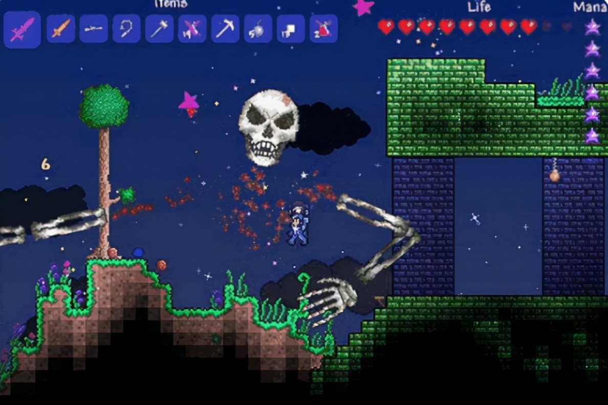 然后是骷髅王,这个召唤方式算是最简单的了,在地图上找到地牢,在地牢门口有一个走来走去的老爷爷,点击交谈,然后选择帮助他。骷髅王就会出现了,骷髅王我个人认为是第二简单的,因为他整体伤害不高,只需要注意他的冲撞就可以了,然后优先把两条手臂打掉,也是很简单的一个BOSS,打败之后可以进入地牢探索,算是开启一个小小的新地图吧,地牢中有很多宝箱可以白嫖。
