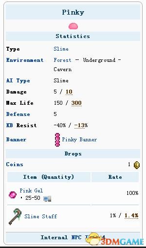 掉落:1金/粉色凝胶/史莱姆法杖(掉率提高了,但刷新率那么低等于没加