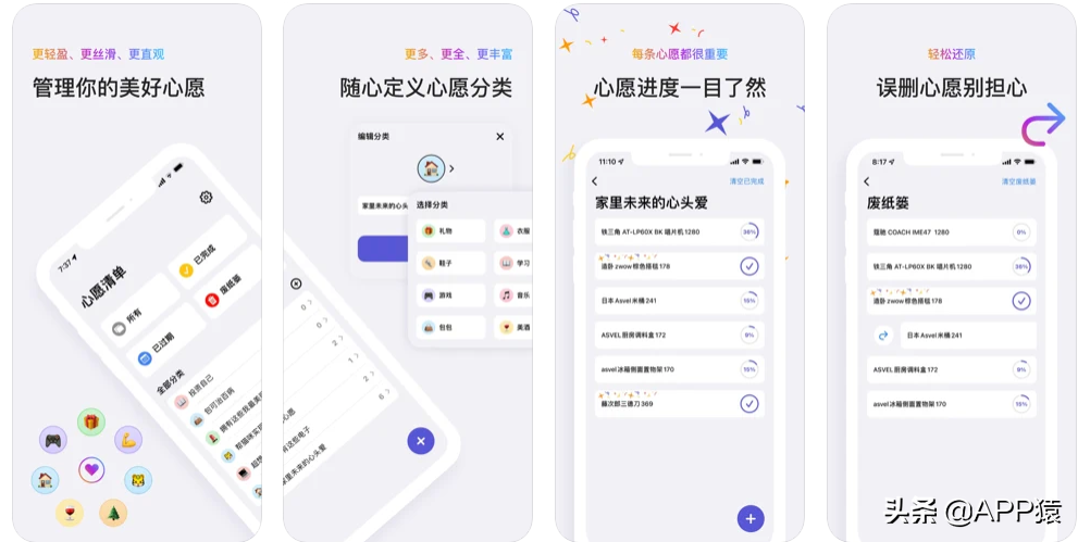 【心愿清单】是一款轻量极简的生活心愿记录APP,这类APP的目的主要便是提醒自己还有什么心愿没去实现,给自己的心愿确定明确的目标和更多努力的动力。功能上倒是没有太多有新意的地方,主要便是通过日期来记录心愿,到期提醒,另外还有心愿分类的管理功能。主要的特色便是界面UI设计的相对出彩,很精致,另外也是完全免费无内购。