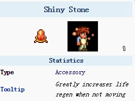 闪亮石会稍微增加其他治疗物品或buff的效果,即使玩家在移动中或使用物品。