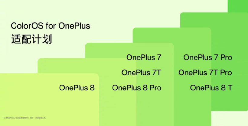 官方还表示,ColorOS for OnePlus 适配机型将包括一加 7、一加 7 Pro、一加 7T、一加 7T Pro、一加 8、一加 8 Pro、一加 8T,目前一加 7 系列的 ColorOS 尝鲜仍未有消息。