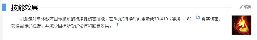 点燃:这里为什么要补充说明,点燃作为辅助长带的召唤师技能之一,上线及对线期至关重要。先上说明图