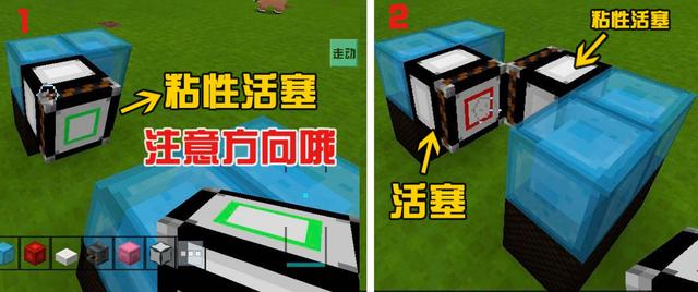 接下来在粘性活塞上放两格粘液方块,然后敲掉下面的那一个。