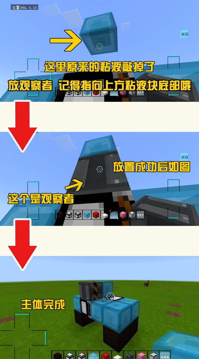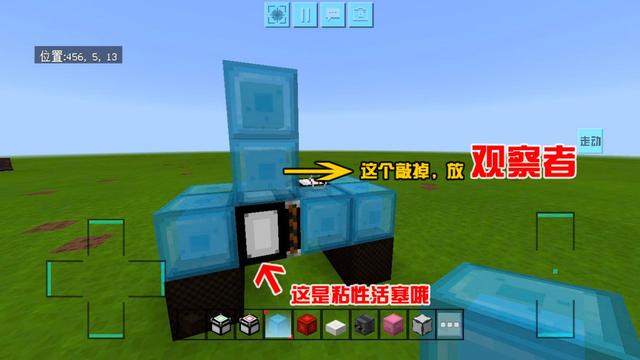 完成后把上面的粘液方块敲掉,在观察者旁边放一个粘液方块。