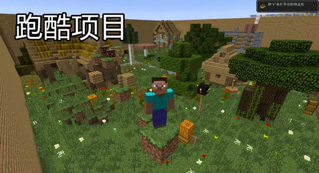 除此之外,《我的世界》中还有各种各样有趣的玩法。跑酷算是其中经典的玩法之一。各类建造大神在其中建造出困难的跑道再交给跑酷大神去完成通关。