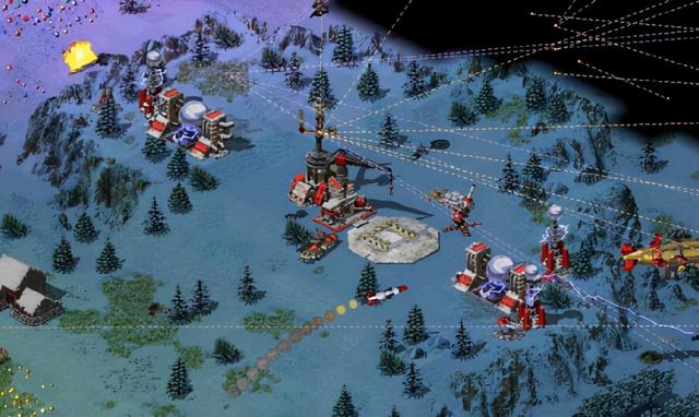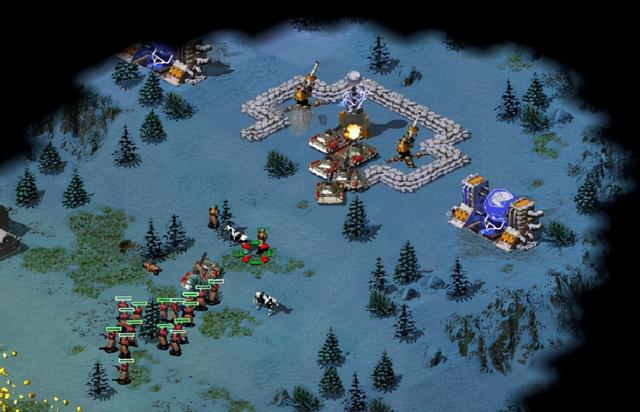 为了击败我军,盟军会不断使用超时空传送仪,派遣坦克对我方在小岛上建立的基地发动攻击,火箭飞行员也会从海的另一边飞过来发动袭击,不过这些攻击大多惊喜有余,火力不足,在吃了一两次瘪以后,摸清盟军指挥官的套路,在特定位置准备相应的守军,即可安稳发育到后期。