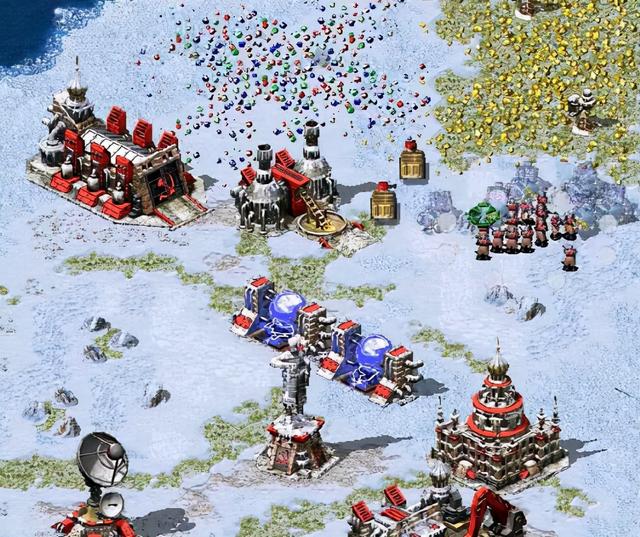 盟军并未料到苏联指挥官会打出这样的操作,大意了没来得及回防,很快我军工程师就占领了大量盟军设施,直接在盟军基地前建了一个苏联前哨站。