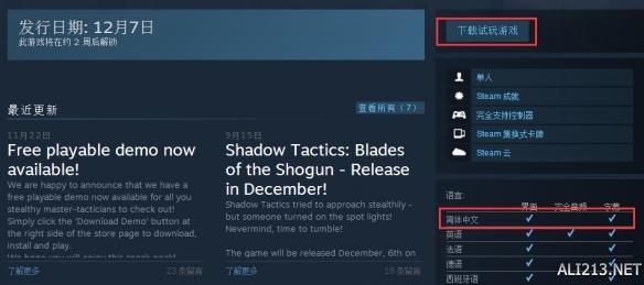 《影子战术:将军之刃》将在今年12月7号正式在Steam平台和GOG平台发售,感兴趣的玩家不妨先下载这个只有2.8GB的免费试玩版,体验一番。