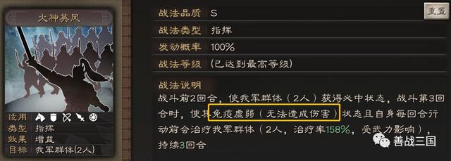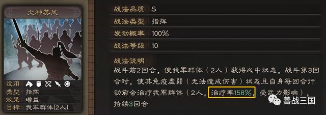 一直以来可能有个印象是治疗都是高智力的治疗的更多,其实恢复多少而是和“治疗率”有关,至于属性则是后缀的加成比例,比如有统率影响、智力影响,而祝融的则是武力影响。
