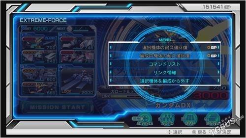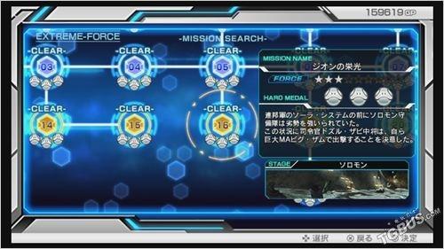 游戏中能玩的模式只有2种,一是本作主打的穿越剧情EXTREM FORCE模式,然后就是FORCE BATTLE,说白了就是面连。
