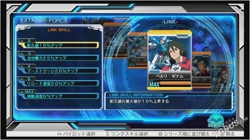 关于机体等级不得不吐槽一下,这一次不再是像之前那样选择对应的属性开始升级,而是单纯的升级拿技能。每个机体满级6级(僚机无等级),每升一级可以获得一个“link skill”,效果可以随时确认不过都是加血,加槽,加伤害或者回子弹速度提高,这样一来可养成的地方其实不多,机体到6级之后就没有可突破的地方了,相比之前的升级属性和各种技能真是差了太多。