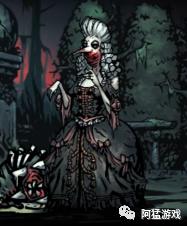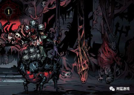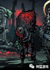 它会从背后掏出菜刀袭向英雄造成流血伤害,或将手中托盘里的腐肉喂向英雄造成腐蚀伤害,最后就是庭院中怪物的通用技能“饥渴”,吸食英雄的血肉给英雄造成伤害并恢复自身血量。