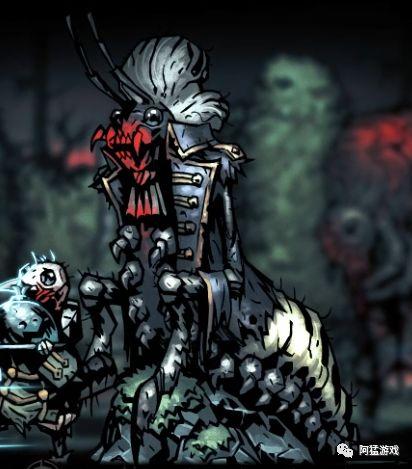 男爵上半身保留着人形,两只手臂已经变异成可伸缩的昆虫前肢,而下半身已经完全变成满嘴利齿的巨大跳蚤,狰狞无比。