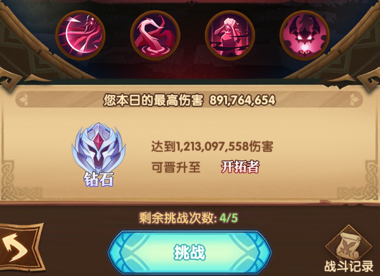 因为这个活动跟梦境有点像,所以说每个玩家们每天只有五次的机会,打完之后只能第二天继续了,如果玩家们要想在这个活动中打出高分的话个人比较建议将自动关闭掉,自己手动去点击技能,因为只有自动点击技能的话才能使得你这个英雄的阵容的输出能力变得更高,前提是你对英雄的特性比较理解,如果不理解的话你还是选择老老实实地选择自动,哪怕损失一些战斗力也无所谓。