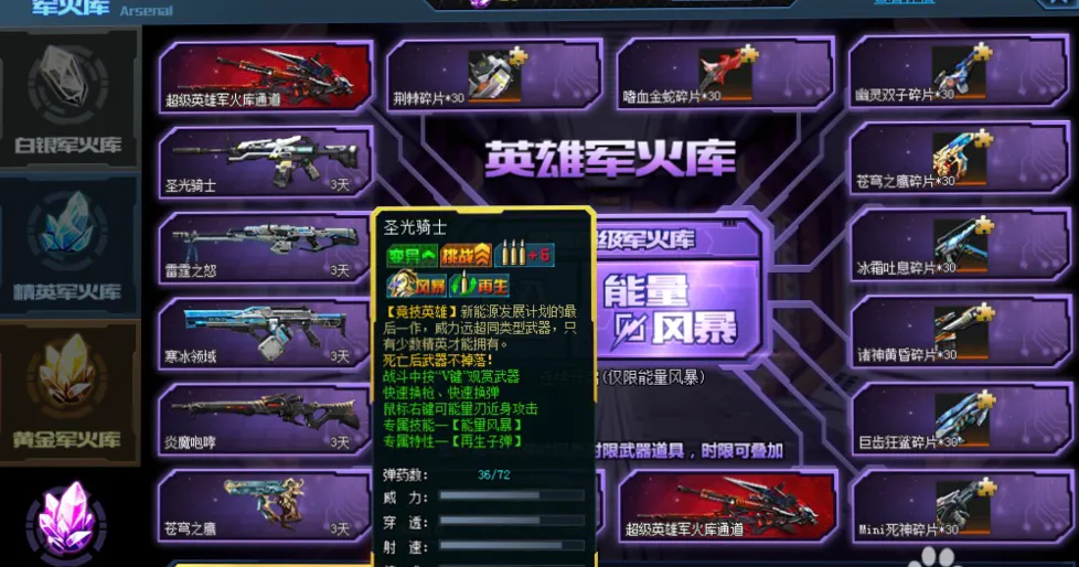 方法三:你可以通过英雄军火库来获得英雄级武器,英雄水晶签到就可以免费获得(但是这个方法需要很多时间)