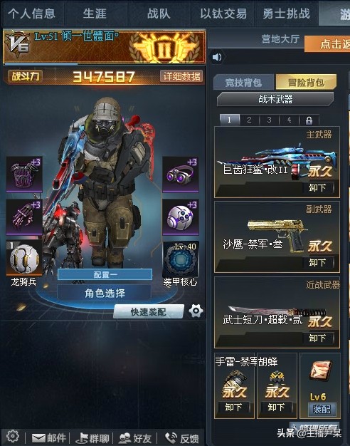 ②快速装配右边的齿轮可以设置装配方案,一键换装(冷却10分钟),V4以下(没开冒险背包)冒险玩家的福利