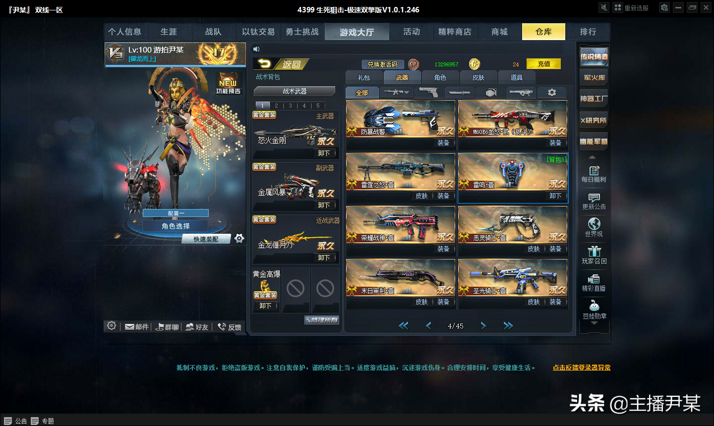 选定你想要的黄金武器,消耗240幽能宝石走1次,消耗2200宝石走10次,每走1次可获得你选定的黄金武器的10个碎片,大多数幽能军备里的黄金武器只要350碎片合成!(没错,幽能军备的黄金武器可以合成!)比如:金属风暴、深渊之刃、死神之光、弧电离子... ...荒野屠夫需要400碎片合成,黄金战盾需要840碎片合成(这个最亏,目前打冒险实用不如前几个还特别贵!)
