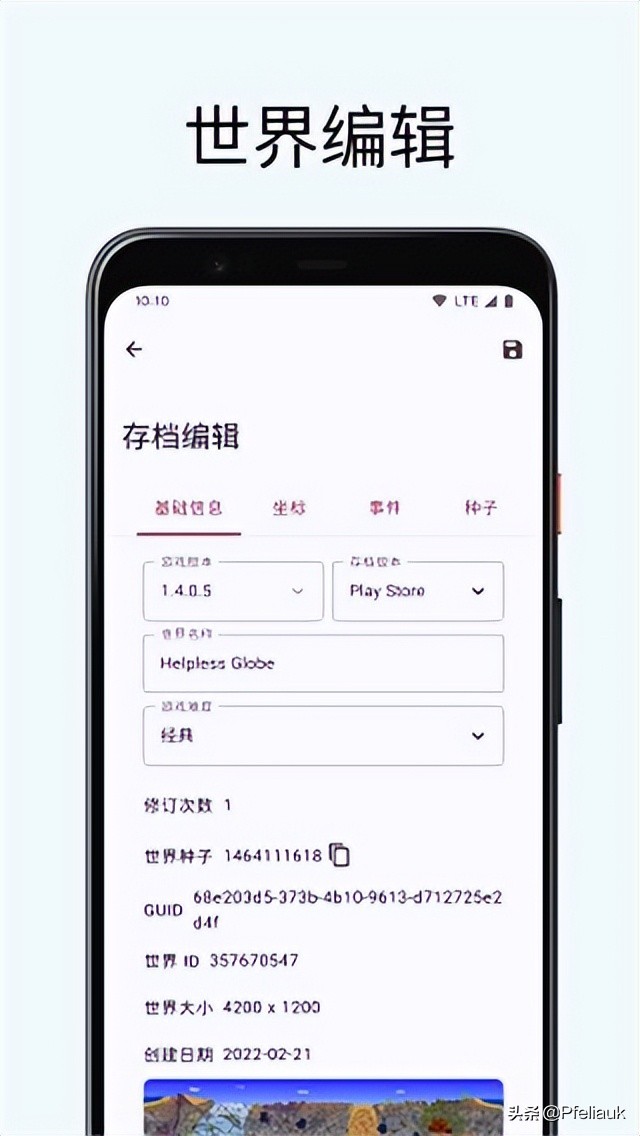 1、世界缩略图图片生成。2、完善世界事件编辑。3、增益名称适配多语言。4、增益可一键设置最长时间。5、物品堆叠数可一键设置999。6、存档导入支持`.map`文件。7、修复关闭对话框的拖沓感。8、修复一键解锁旅途研究遗漏物品。9、修复种子过长时复制按钮无法正常显示。