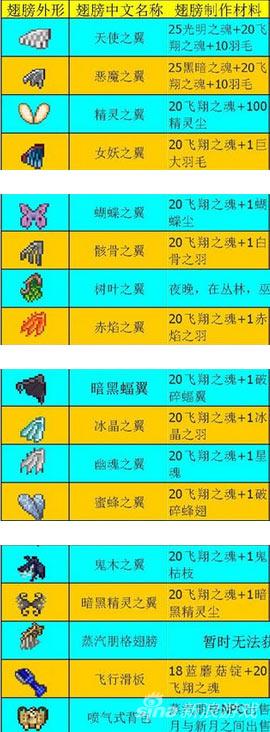 泰拉瑞亚翅膀合成表大全(最详细完整的翅膀合成攻略分享)