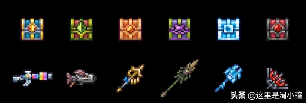 第一个是神圣箱,只能刷神圣怪掉落,武器是法师武器彩虹枪,射出一道彩虹,造成持续伤害。