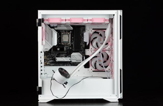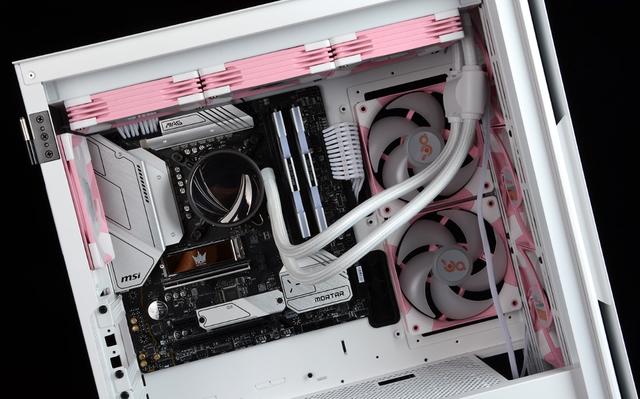 散热方面,如果是日常装机,我肯定建议你选择一款百元以下的高性价比风冷。但是今天给妹纸装机,这个逻辑是明显不适用的。老铁给妹纸选的是银河T360 白色一体水冷,更骚的操作是,还让我把原装风扇换成了只有白光的爱国者银河C1粉白风扇。反正不是自己用,老板要求啥,咱就装啥。