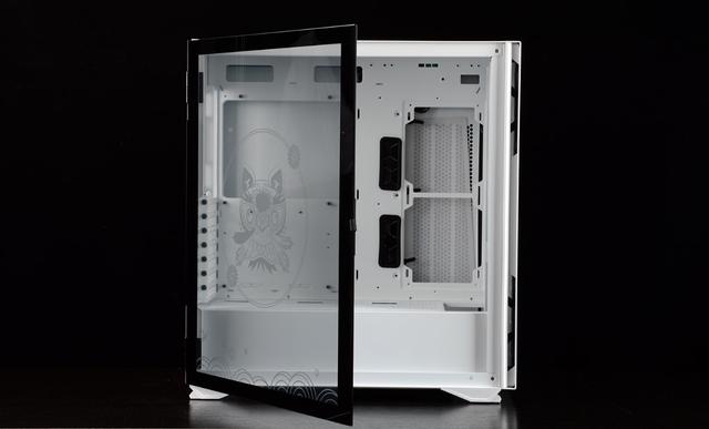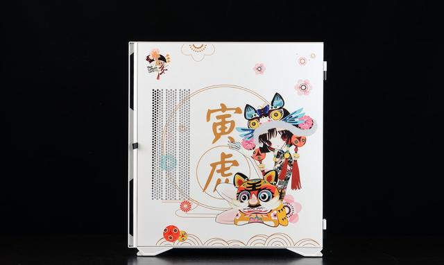 机箱右侧板整体采用SPCC钢材质,一侧有大面积的散热孔可以更好的辅助机箱内部散热。最出彩的应该当属上面的国潮IP华风少女寅虎娘(不懂就要问:这是潮流艺术家/插画家—欢叔(李欢)创造的传统文化潮流化艺术IP)。同样采用的是UV打印工艺,色彩鲜艳的同时,也具备了非常不错的表面耐抗性(不易刮花)。
