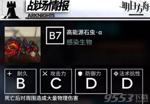 除了毒气和精兵之外,敌人还会出动大量的高能源石虫,这是一种感染生物,他的耐久值,攻击力,防御力,法术抗性如下图所示。这种感染生物还会爆炸,并产生巨大伤害,所以需要玩家提前击败,以免损兵折将。