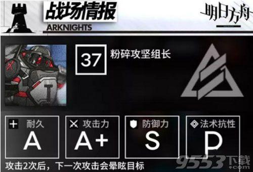 除此之外在H5-3中敌人还会出动曾经出现过的粉碎攻坚手组长,他的能力之前各位玩家应该也见识过。需要注意的是,由于他们的法术抗性都是D,还是很低的,所以术师干员的伤害会更好。