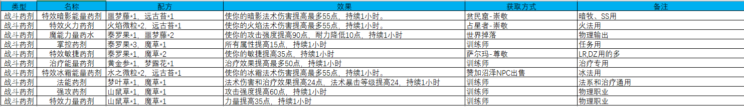 战斗药剂的数量明显多于守护药剂,我这里给大家介绍以下10种: