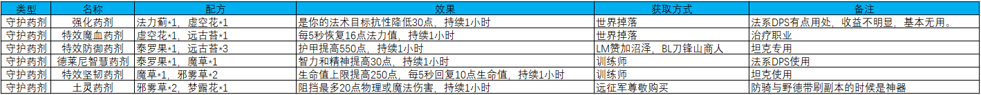 土灵药剂:阻挡最多20点物理或魔法伤害,持续1小时,防骑与野德带刷副本的时候是神器。