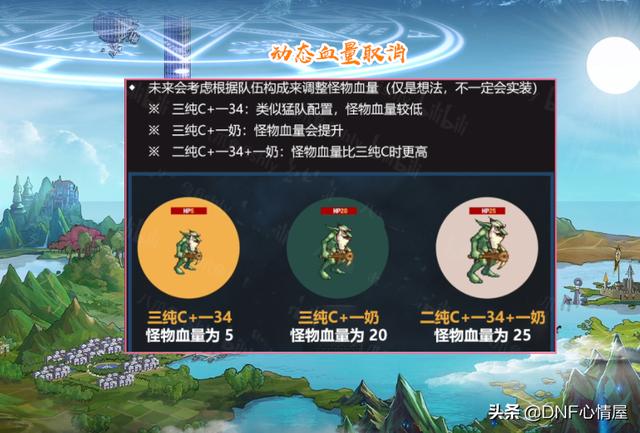 在夏季发布会上,“尹明镇”已经了解奶荒现象,105级版本不再需要制作两套装备,且会提升奶系职业伤害。此外还会根据队伍构成,调整怪物血量,也就是所谓“动态设定”,有三种模式: