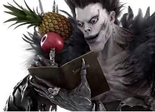 本来死神是不用吃饭的,死神琉克却对苹果情有独钟,就像人类爱喝酒或爱吸烟一样,一段时间不吃就会觉得浑身不舒服。而且人间的苹果比死神界的苹果鲜美多汁,所以才会有硫克频繁吃苹果的设定。