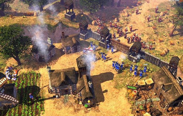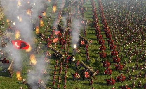 三、战火。《帝国时代3》强调阵型的运用,战场从混乱的散兵队列变成了数支方阵之间的较量,玩家依然可以用混编的老办法来战斗,但这样所带来的结果是致命的。兵种特性的互补是帝国时代3所倡导的全新游戏方式。新引擎能够实现坡面的真实物理作用,玩家可以利用坡面躲避对方直射火炮的覆盖,或者隐藏自己,炮兵也可以利用地形发挥更大的优势。在以往作品中,炮兵更多是在攻城战中使用,野战中它所杀死敌人往往比误伤的自己人多不了多少,本作中的炮兵的射程很远,并且不会出现误伤情况。