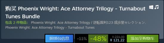 此外,《逆转裁判123:成步堂精选集》及游戏原声捆绑包现在购买享48%off---121.22元