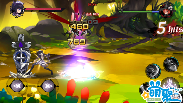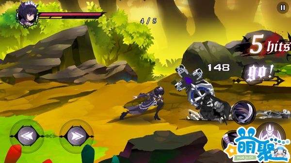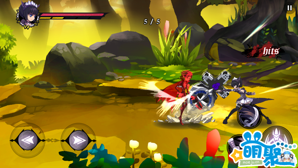 本作的战斗系统采用了传统横版动作游戏的移动按键+技能按键的组合,玩家通过点击移动按键左右移动,但相比其他横版动作游戏,本作只有横向的移动,而少了跳跃或下蹲的纵向移动。也就是说闪躲只能通过双击方向按键进行冲刺来实现,也无法根据地形灵活改变攻击方式,空中连击等动作更是无从谈起,因此本作在这方面的操作就显得相对单调了。