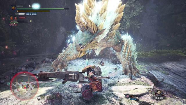 所以这就造成了你在这个区域没有遇到的时候,溜一圈回来可能就会看见素材点和“争夺地盘的痕迹”出现,因为采集其实只有一个进度,在前往地图的时候用R2查看一下,当矿石存满的时候就会出现大矿脉,这时候就能拿到“引导的结晶”,而当骨冢存满的时候直接可以挖到“引导的龙骨”,同样四个区域都有。