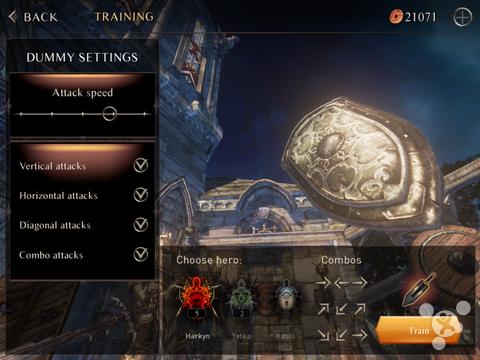 而至于操作方面,本作则与我们熟悉的《无尽之剑》系列极为相似,均采用了划动进攻与点击防御的模式,进攻方面以玩家正面为中心,结合上下左右总共可以分为 9 个进攻方向,并且不同的角色还会有不同的连招,结合连招可以打出爆炸伤害。至于释放技能则只需轻轻一点,不过需要注意的是千万不可在敌人做出攻击动作的时候无脑放技能,否则就真的是杀敌一千自损八百的七伤拳了。至于防御阶段,虽然游戏攻击分为 9 个方向,但基本上任何的攻击都可以通过左右的位移进行闪避。当然,通过盾牌格挡以及武器弹反也是行之有效的防御手段。