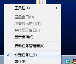 5,以上操作完成之后,再次右键点击任务栏空白处,然后把“锁定任务栏”打上勾。如图下所示;