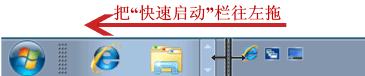 4,此时,快速启动栏就出现啦!只是它的位置不太合适。我们可以用鼠标点击任务栏(竖起来的小点点)左右移动,调整到你想要的位置即可。如图下所示;